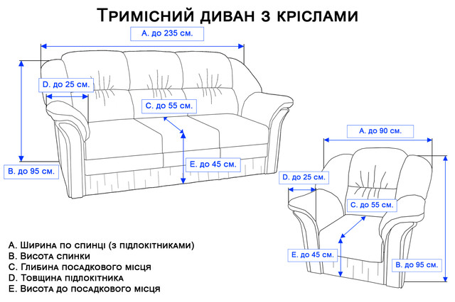Для того щоб визначитися, який саме розмір потрібен вам, необхідно всього лише зробити прості виміри: ширину спинки з врахуванням підлокітників, глибину посадкового місця, висоту спинки від низу, товщину підлокітників та висоту до посадки. Щільність середня, просвічуватись не буде.